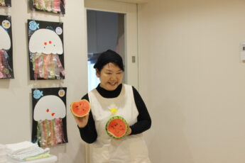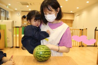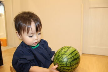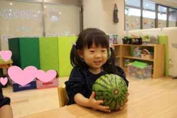 スイカの種取にも挑戦しました👌。小玉スイカもいつものようにみんなで触ってみました😊✌️。