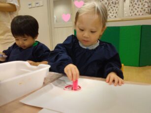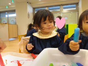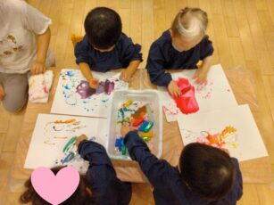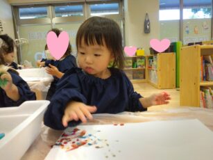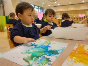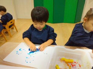 冷たい氷の感触を楽しみながら😍、芸術作品作りに挑戦です✌️。みんな夢中で楽しんでいましたよ💕😊。