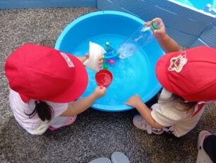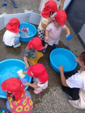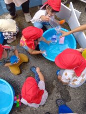 ペットボトルのシャワーを眺める子など。。。それぞれ楽しんでいました🎵