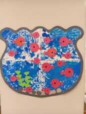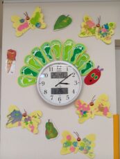 室内には子どもたちが作った制作物が少しずつ飾られていっています。