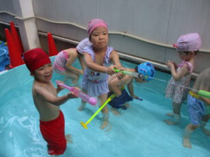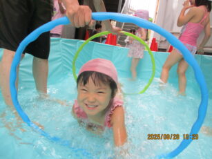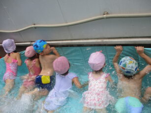 幼児クラスのプール遊びも後半になり、よりダイナミックになりました。