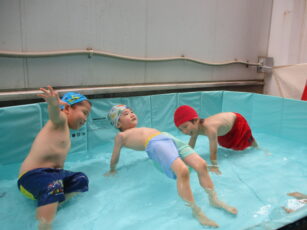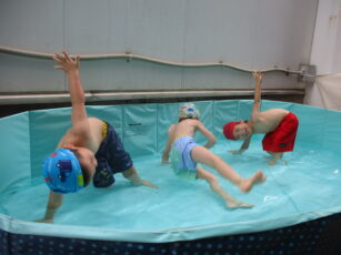 水の中でリトミックをしたり、組体操をしてみたり。