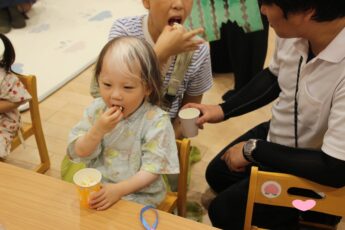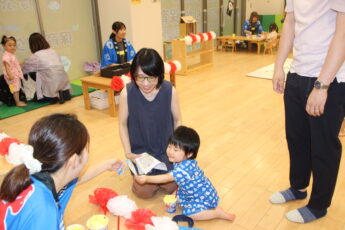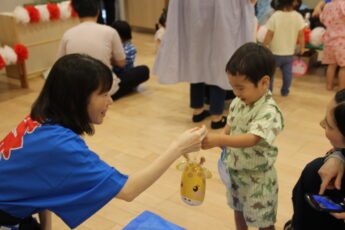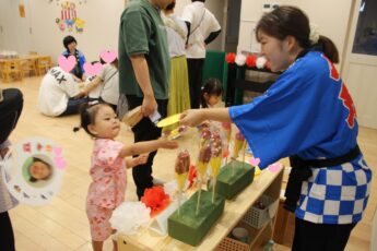 今日は。ぱぷりか保育園上大岡です。今日は夏祭り特集です。ここからは、第2部のぶどう組さんの様子をお伝えします。