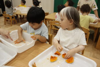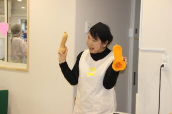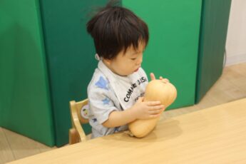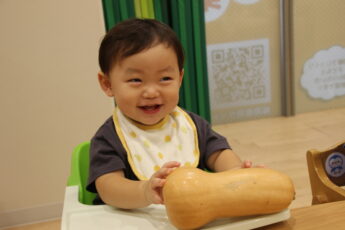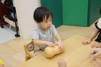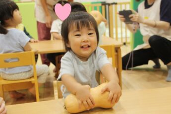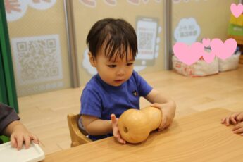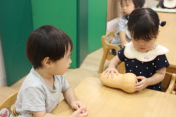 スーパーにはいろいろな旬の野菜がならんでいますね😊💕。ある日、パターナッツかぼちゃという名前で、ひょうたんのような可愛い形のかぼちゃを見つけました😊❤️。2個購入し、みんなで触ってみることにしました👍。
