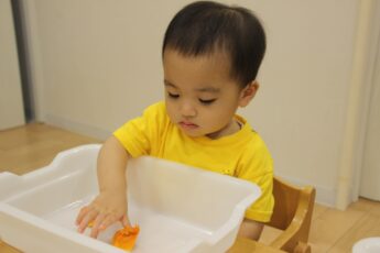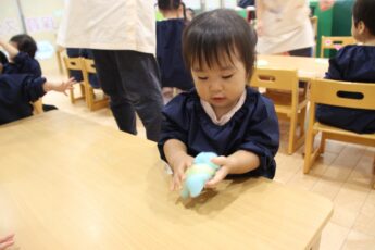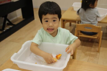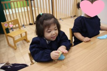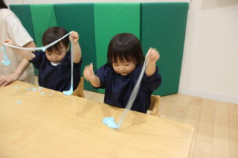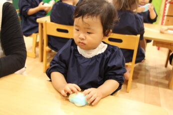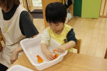 水を入れるとあら不思議!😮かたいと思ったら、つるーっととろけて落ちていきます😍。初めての感触にみんなびっくりしたようでした😊✌️。