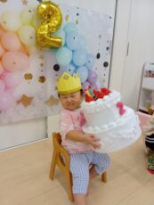 ケーキを持つとニコニコ笑顔になりました 🎂