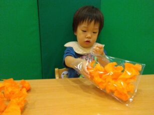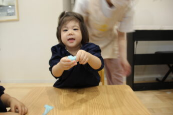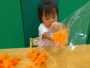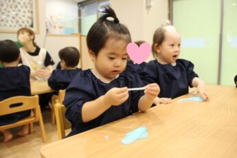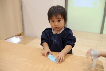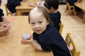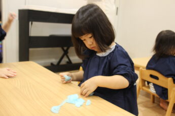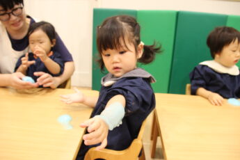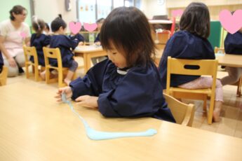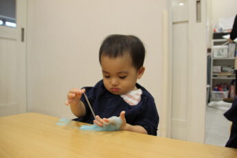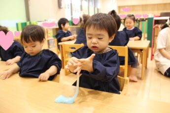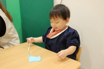 前回行ったスライムの感触遊びは子どもたちに大人気「先生‼️、またスライムつくってね」とリクエストがありました。そこで、スライム遊びをまたやってみました💕。