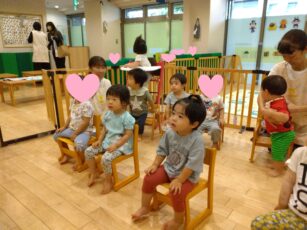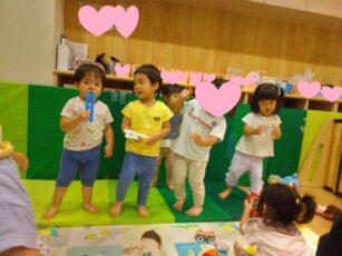 夕方、保育室に出来上がった、簡易ステージにマイクをもって、歌を歌う子どもたち、音楽に合わせて創作ダンスを披露してくれる子どもたち、毎日盛り上がっています😍。