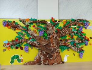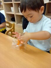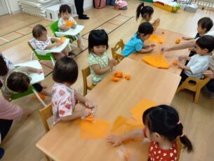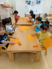 ふくらっみ、色にも興味を持ちながらみんなで秋の実りを表現しました。