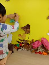自分たちの作った作品を見つけては、「これぼくの!」「ぶどういっぱい!」