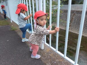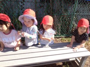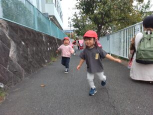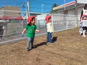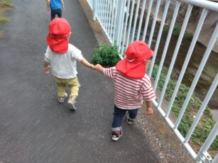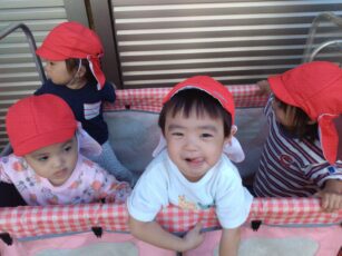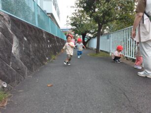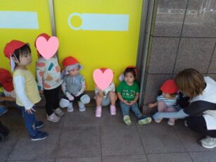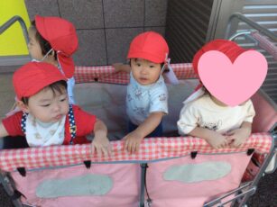 最後は、戸外活動の様子です😊。いちご組さんは、立ち乗りのバギーで出かけることもありますが、最近はお友だちや保育者と手をつないで散歩に行かれるようになりました😍。