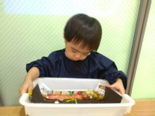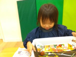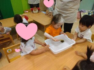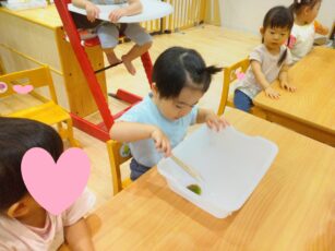 次は、いちご組さんの製作の様子です👍。ハロウィンに向けて製作も頑張っています😊。何ができるか、お楽しみに😍💕