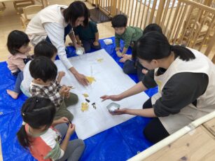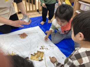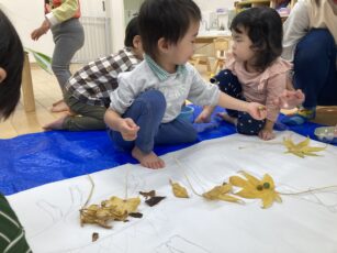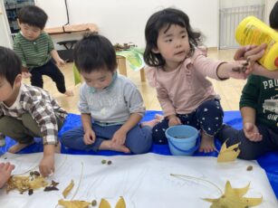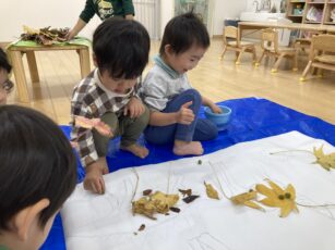 11月10日(月) ぱぷりか保育園 戸塚 公園の落ち葉が赤や黄色、オレンジへと姿を変え、お散歩が一段と楽しい季節になりました。 散歩先で見つけた落ち葉やドングリを使って、ぶどう組さんが製作をしました。子どもたちの好きな動物の形に貼り絵をし、素敵な作品になりました!