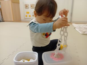 他にも手作り玩具のぽっとん落としやチェーン落としもあります。