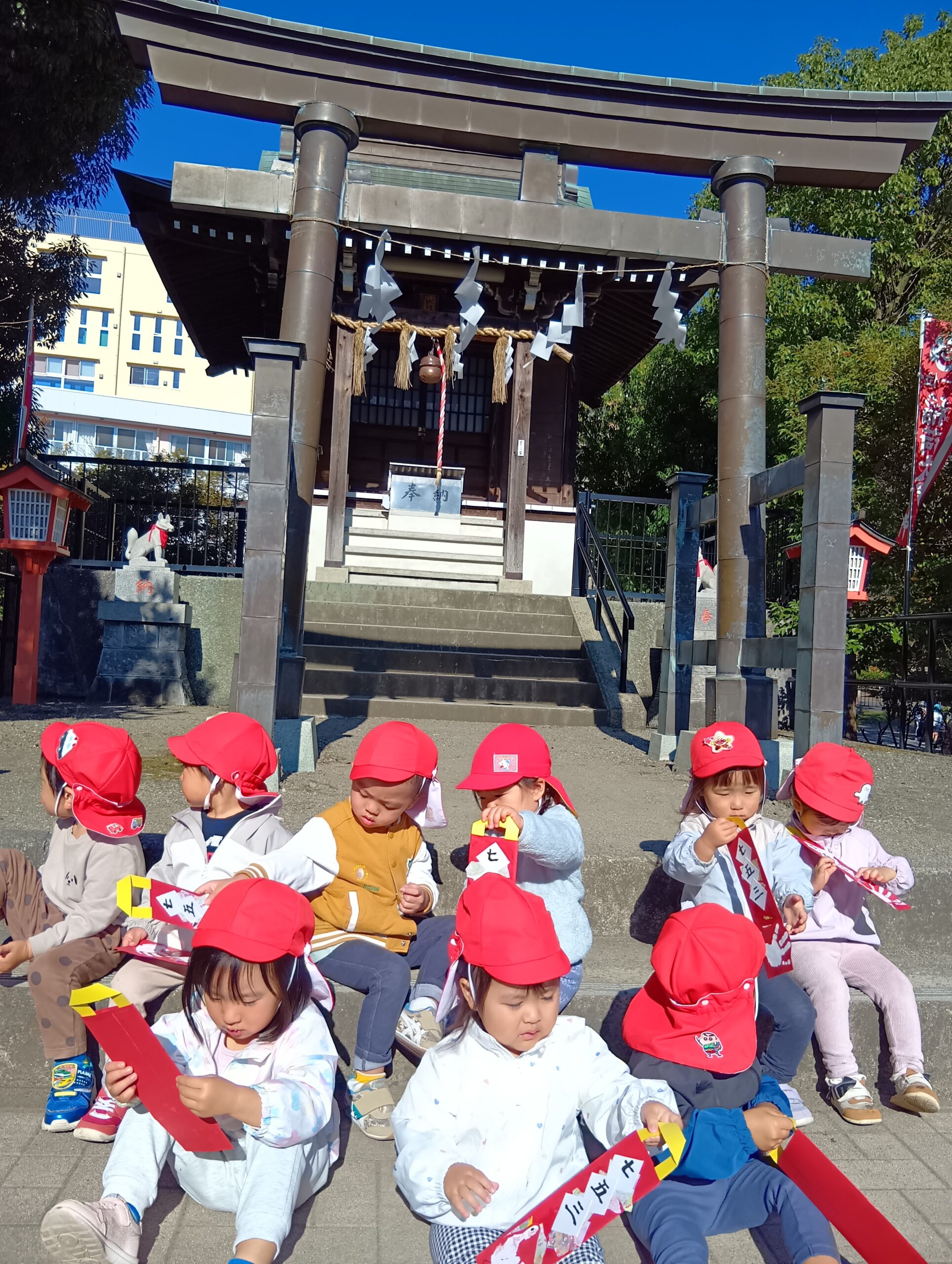 心地よい秋の空気の中、みんなで近くの神社へ七五三のお参りに行ってきました。