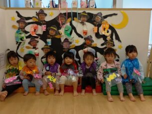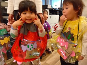 「おばけくるの?」と不安な気持ちと「お菓子もらえる!」と嬉しい気持ちとが入り混じる子ども達。