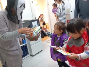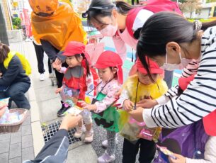 子ども達の大きな声が響き、お菓子をもらうことができました。
