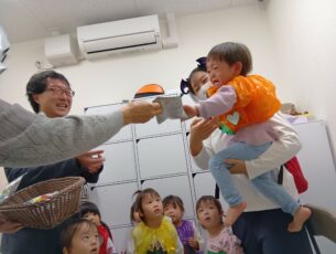 最後は園長からお菓子をもらいます。
