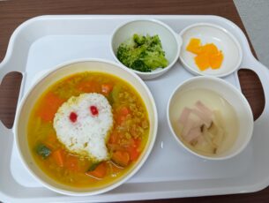 給食はハロウィンカレーライス。