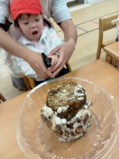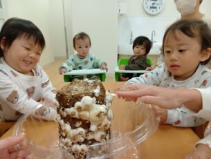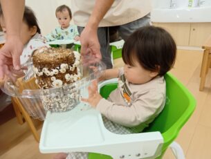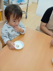 れもん組のお友だちも「これなんだろう?」と興味津々で触って感触を確かめたり、触りたがらない子も。