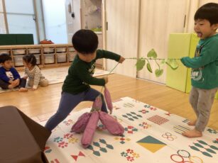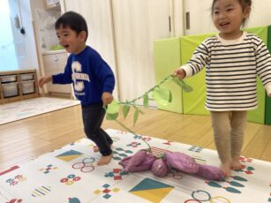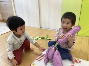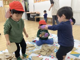 12月1日(月) ぱぷりか保育園 戸塚 先日、お芋ほりごっこをしました。 「うんとこしょ どっこいしょ」力を合わせておいもが掘れました! 「おいもの体操」で元気いっぱい! 焼き芋を作ります。 「できた!」おいしいお芋、どうぞ♡