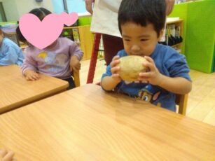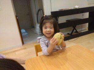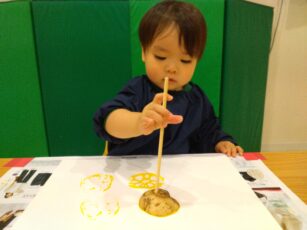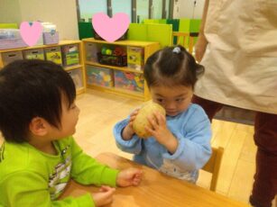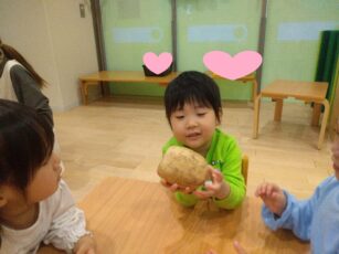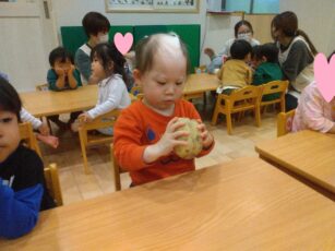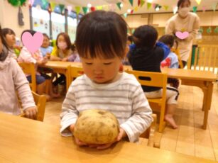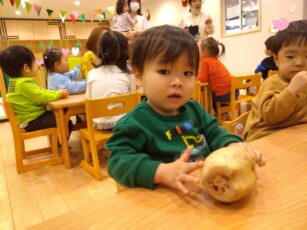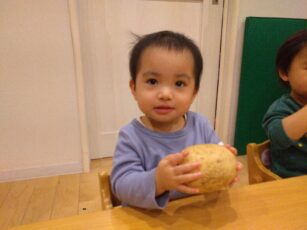 今日は、冬至、食育で旬の野菜、レンコンを触ってみました😊💕。また、冬至の日には、「ん」が2個つく野菜を食べると縁起が良いそうです👍、レンコン、南瓜(ナンキン)を給食で食べるお話を聞きました😍💕。