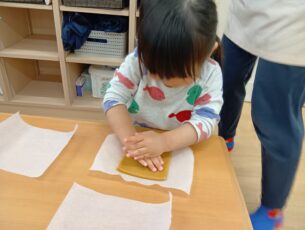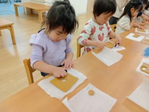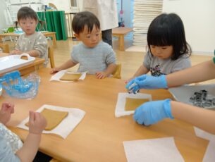 好きな型を選んで、小さな手でぎゅっと型を押す姿は、とても真剣でした!