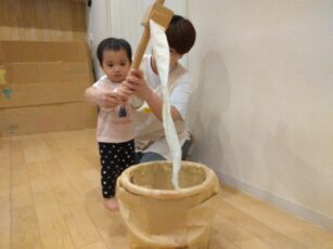 お餅つきごっこ楽しい