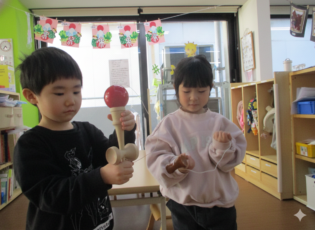 お友だちが成功すると「すごいね!」と一緒に喜ぶ姿も見られ、
