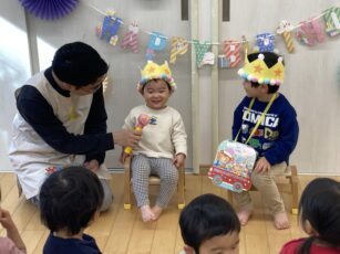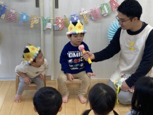 1月29日(木) ぱぷりか保育園 戸塚 2月生まれのおともだちの誕生会を行いました。健やかにおおきくなぁ~れ! 「お名前なんですか?」 姉妹園のぴーまん保育園藤が丘の園長先生が得意のけん玉を披露してくれました。 子どもたちも挑戦! 先生達も挑戦!「できた~!!」 一回で、できた先生!素晴らしい♡ 大満足なけん玉会でした♬ おもしろけん玉大集合!