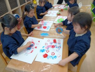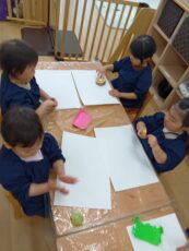 画用紙に付く形を見て楽しんでいました子どもたちです。
