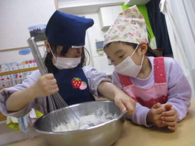 3月3日の「ひなまつり」続きです!! 🎎 ぞう組さん(5歳児クラス)とらいおん組さん(4歳児クラス) による、おやつ作りのです🧁🧁🧁いちごのマフィンを作りました✨✨