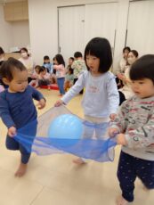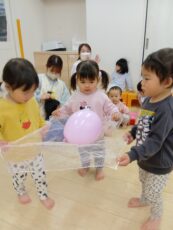 その後は、風船運びゲームを楽しんだり、手をつないで慣れ親しんだ