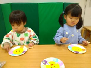 シール貼りは得意なの