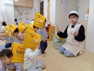 ぶどう組さんは、お椅子に座って〇×クイズに挑戦!