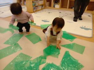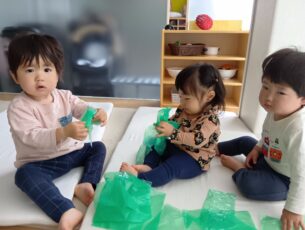 「なにこれ~?」「ツルツルしてる」と感触に興味を持つ子や、